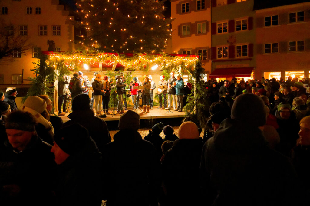 Die Weihnachtsmärkte sind in jedem Jahr in Wangen ein starker Publikumsmagnet. Kein Wunder, denn rund 50 Stände bieten an jedem Markt Kunsthandwerkliches oder Leckeres an. Dazu klingt adventliche Musik über die Plätze und durch die Gassen und auf dem Postplatz dreht sich Mal um Mal das romantische Kinderkarussell.